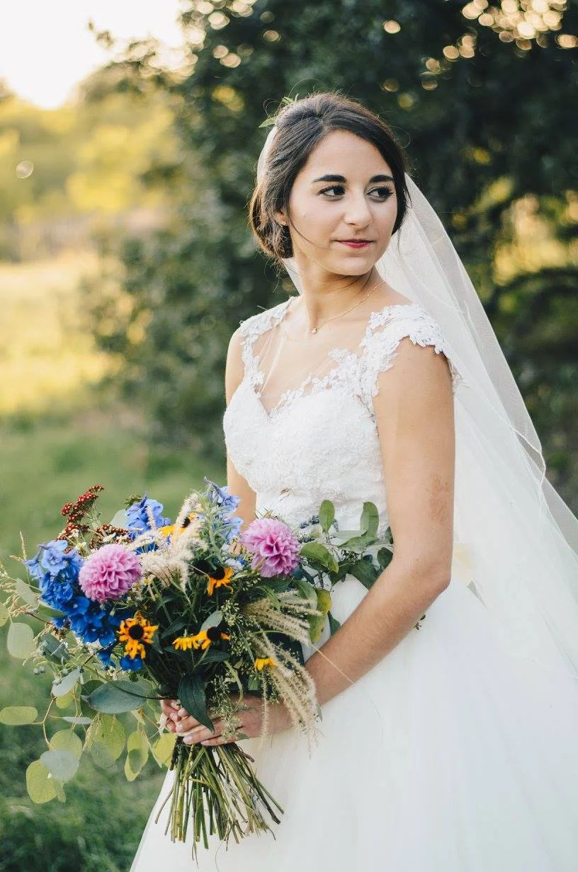 Sarah loves wildflowers and wanted this reflected in her wedding flowers. She made specific color requests and I matched this style with the best blooms that are in season in the heat of summer. This was a slight challenge, but I believe the result was well worth it. The bride and I shared a vision and saw it to fruition, with beautiful results!
