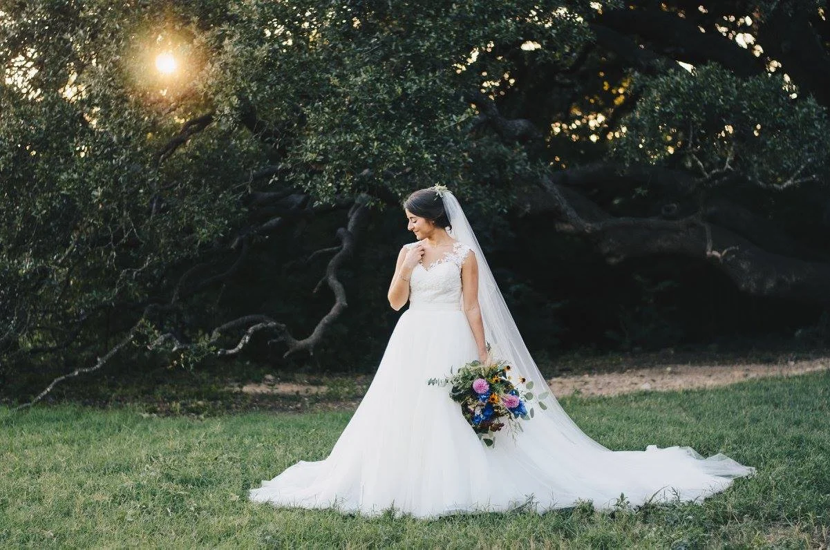 Sarah made such a sweet bride, and is totally encompassed by a Texas Hill Country signature, the escarpment live oak.