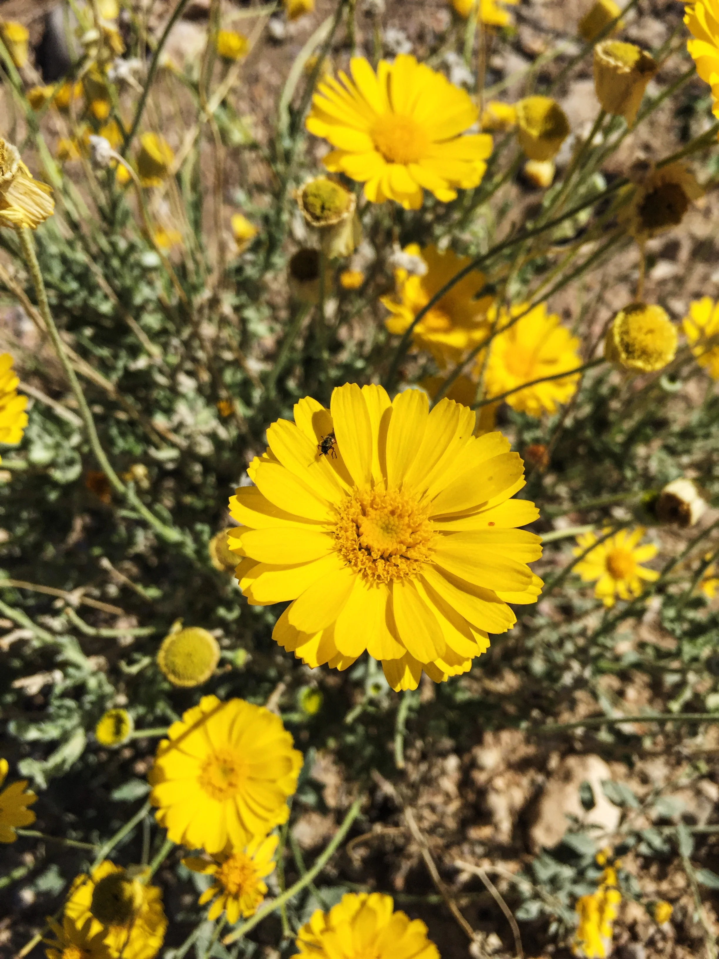 Desert Marigold is a short-lived perennial that creates one of the best shows in some of the harshest conditions in the park. This specimen was found along Old Ore Road, a maintained road that is semi-regularly graded. The plant obviously benefits from whatever moisture is directed to it from the grade. The name Marigold comes from the gold of Mary, the Virgin.