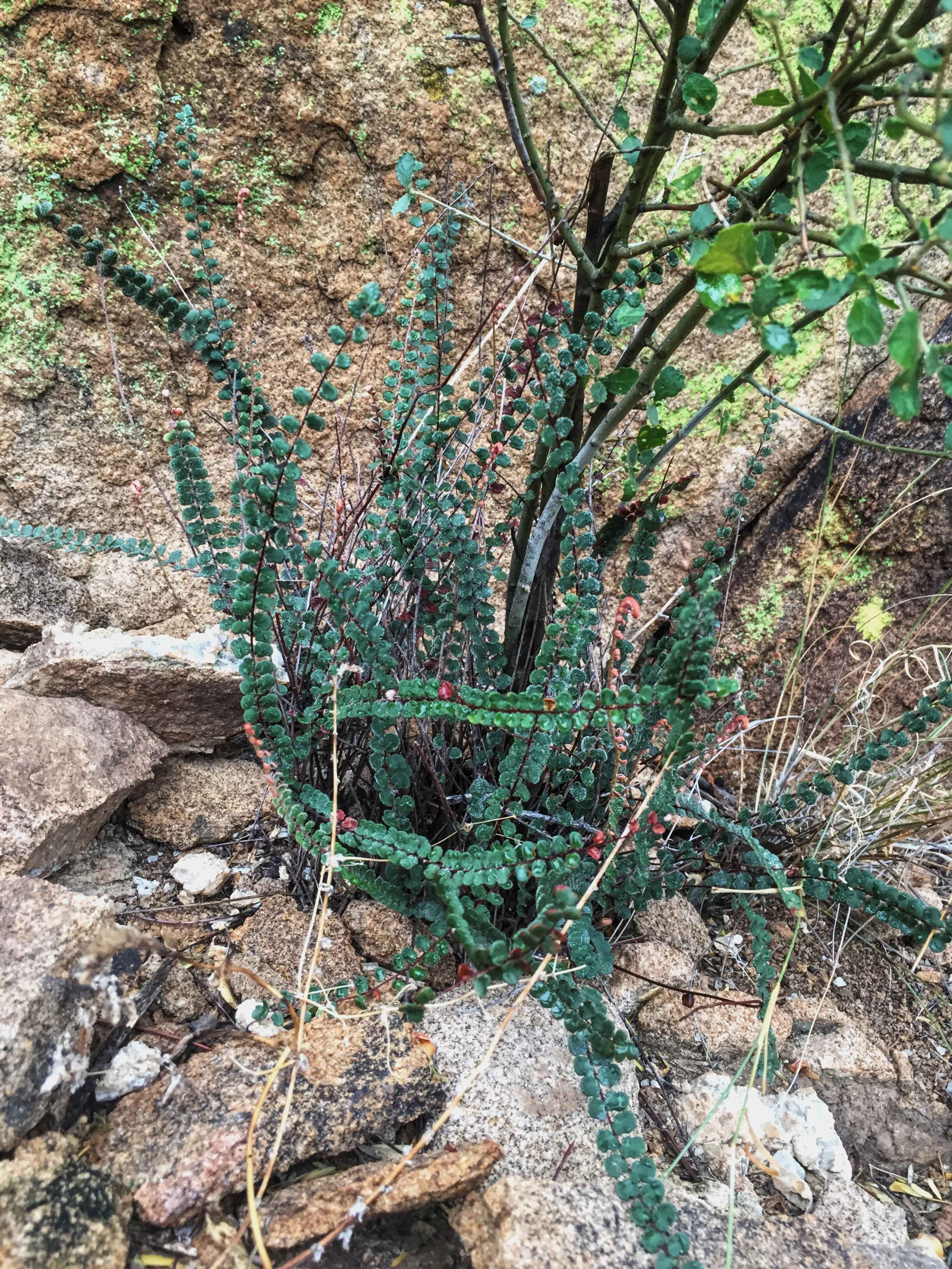 I have a slight fascination with desert ferns, for both their tenacity and adaptability. I have detailed Astrolepis along the James River in the Texas Hill Country before here. This fern fold the individual leaves along its fronds to help conserve moisture and energy during dry periods. It was a particularly wet day when this photo was taken as this specimen is fully open and satiated.