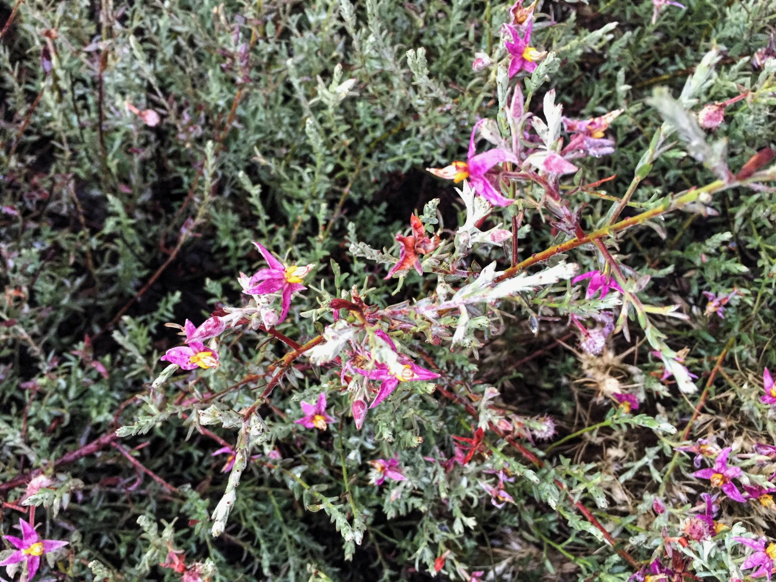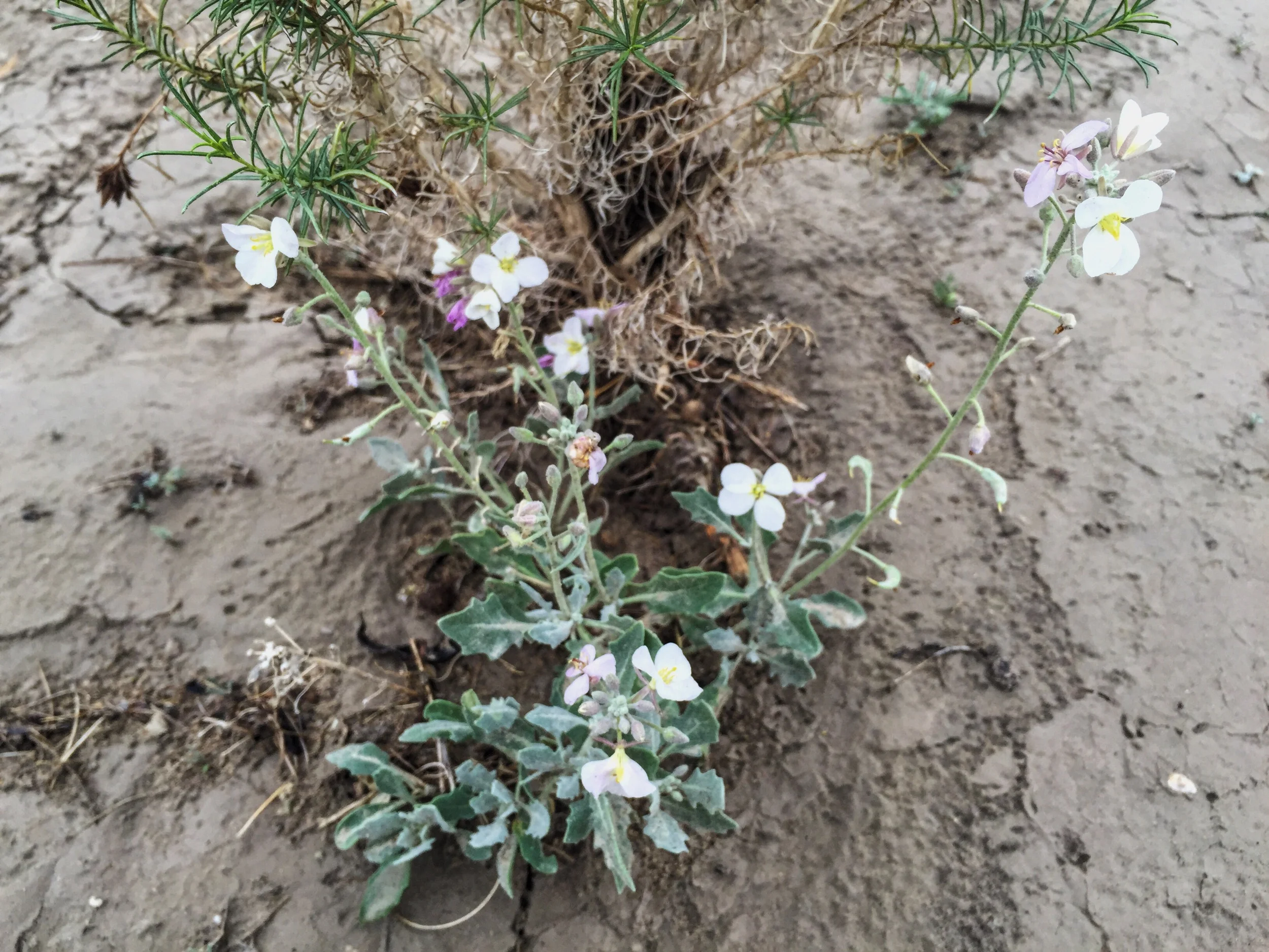 Another species of Tiquilia that doesn't resemble the first described species in the least. This small perennial has found shelter under a Creosote shrub, helping to break the sun's rays during the hottest part of the day. The plant also resembles a Purslane, but leaves are not succulent upon closer inspection.