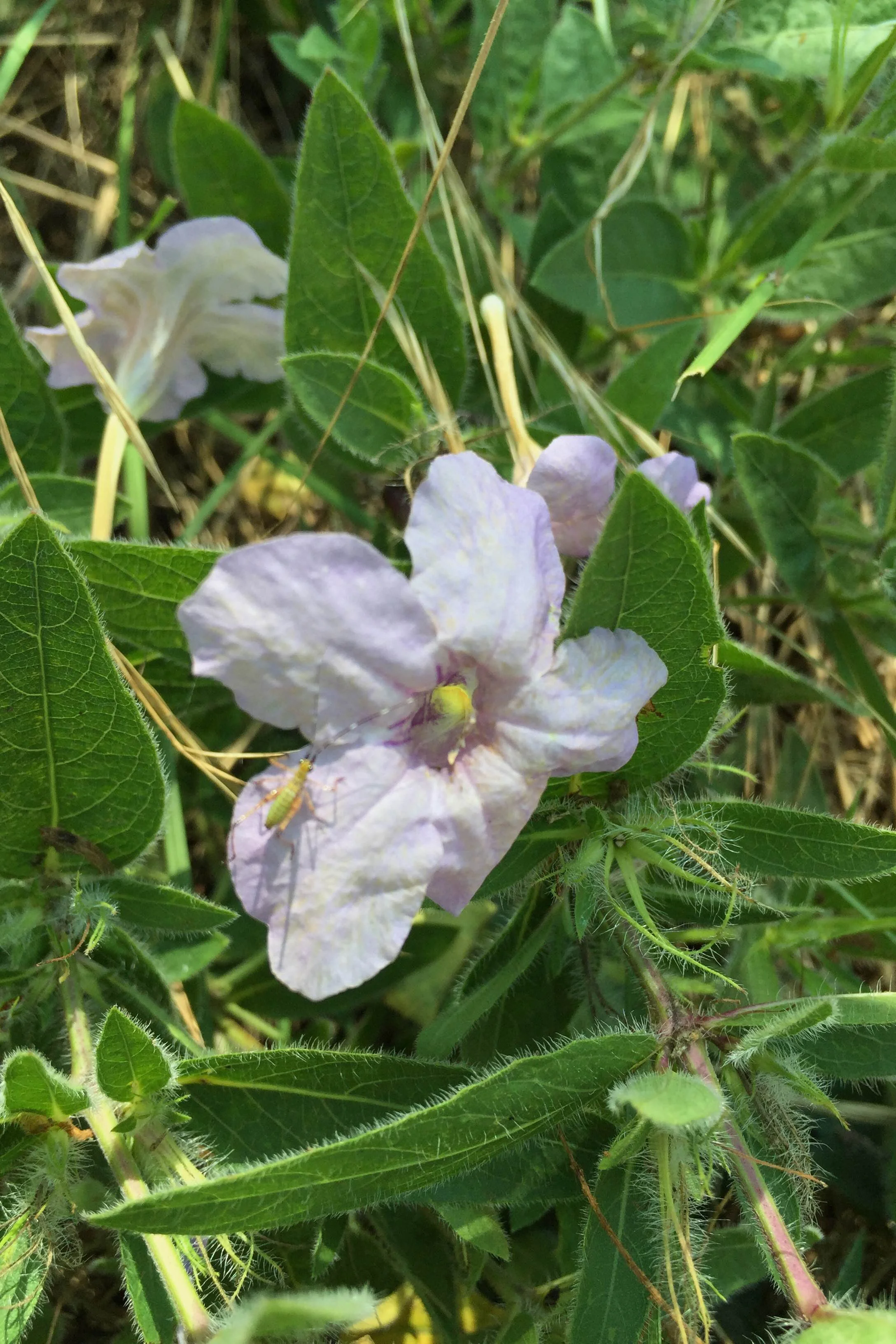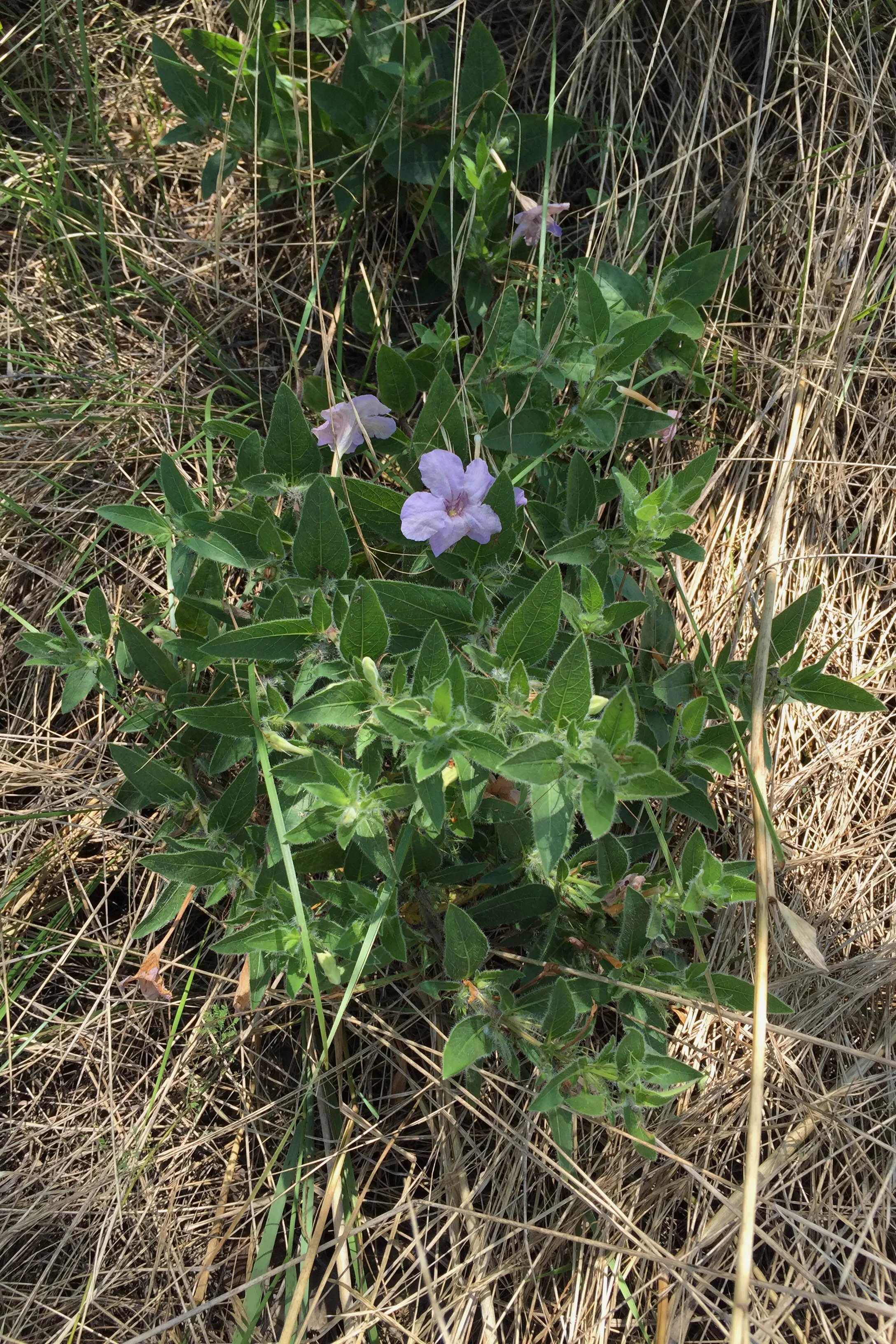 Ruellia has been readily used in landscape applications for some time now, but few are as interesting as this Texas native. Defined by its hirsute leaves and large blooms, this specimen was growing in the shade of a hackberry and in the bottom of the roadside drainage.