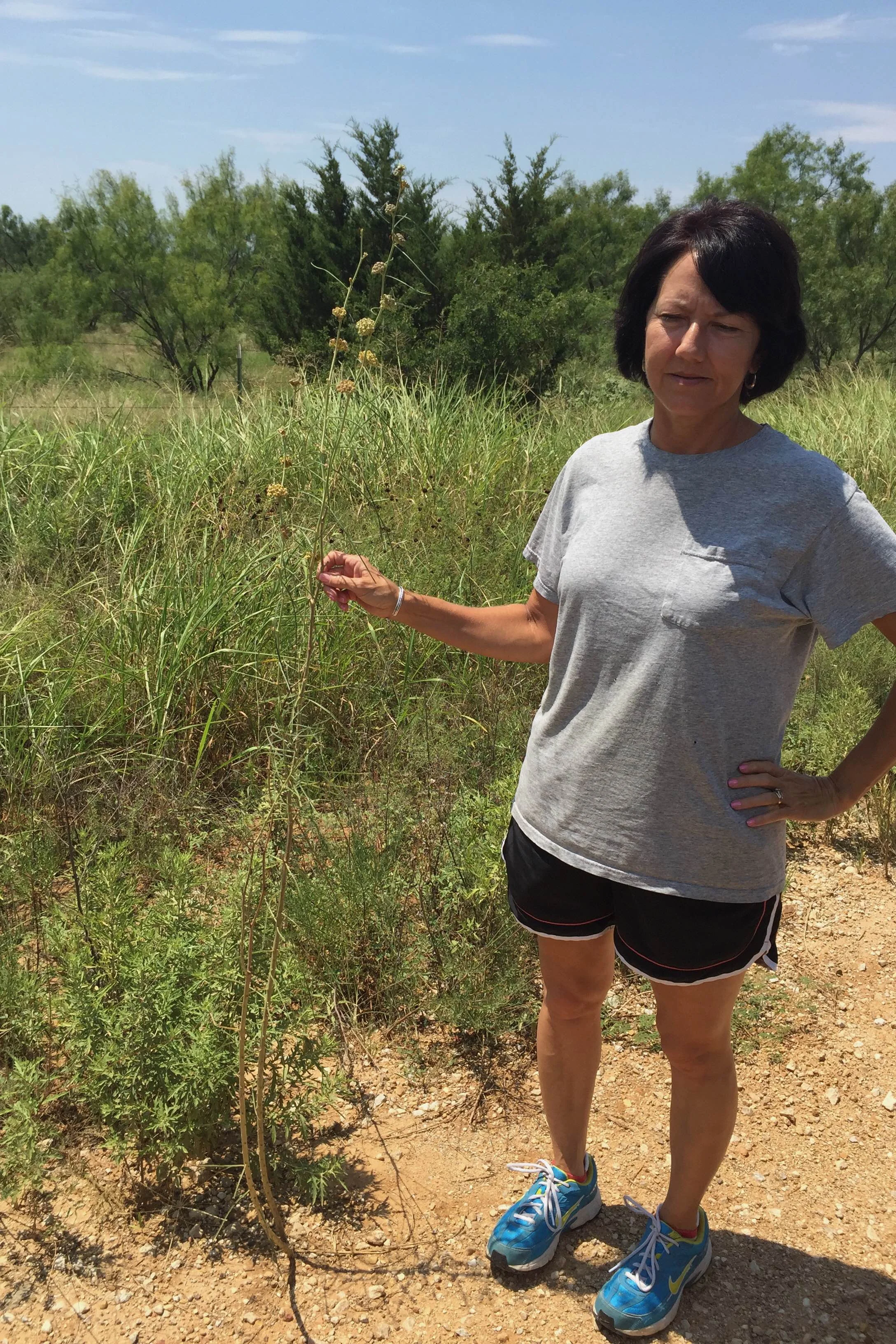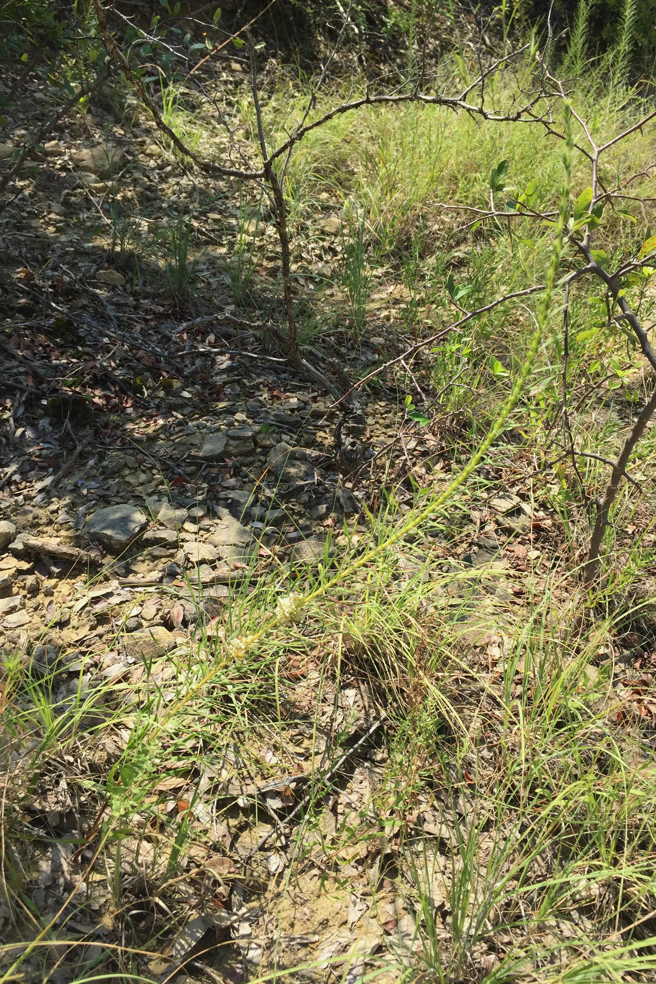 It was a very warm August afternoon when my mom and I ventured out along Cement Mountain Road in southeastern Young County, Texas in search of some unique flora. This county-maintained gravel road traverses the transition between the Rolling Plains and Oak Woods eco-regions. The soil here is sandy and conglomerate, proving responsible for the formation's "Cement" name. There is a lot of early Texas history on this topographical rise (it's difficult for me to call this a "mountain"), including the murder of a Texas Ranger by Native Americans in 1864. Luckily for us, there were no aggressive Indians in sight, and the county crews had not mowed the bar ditches all year.