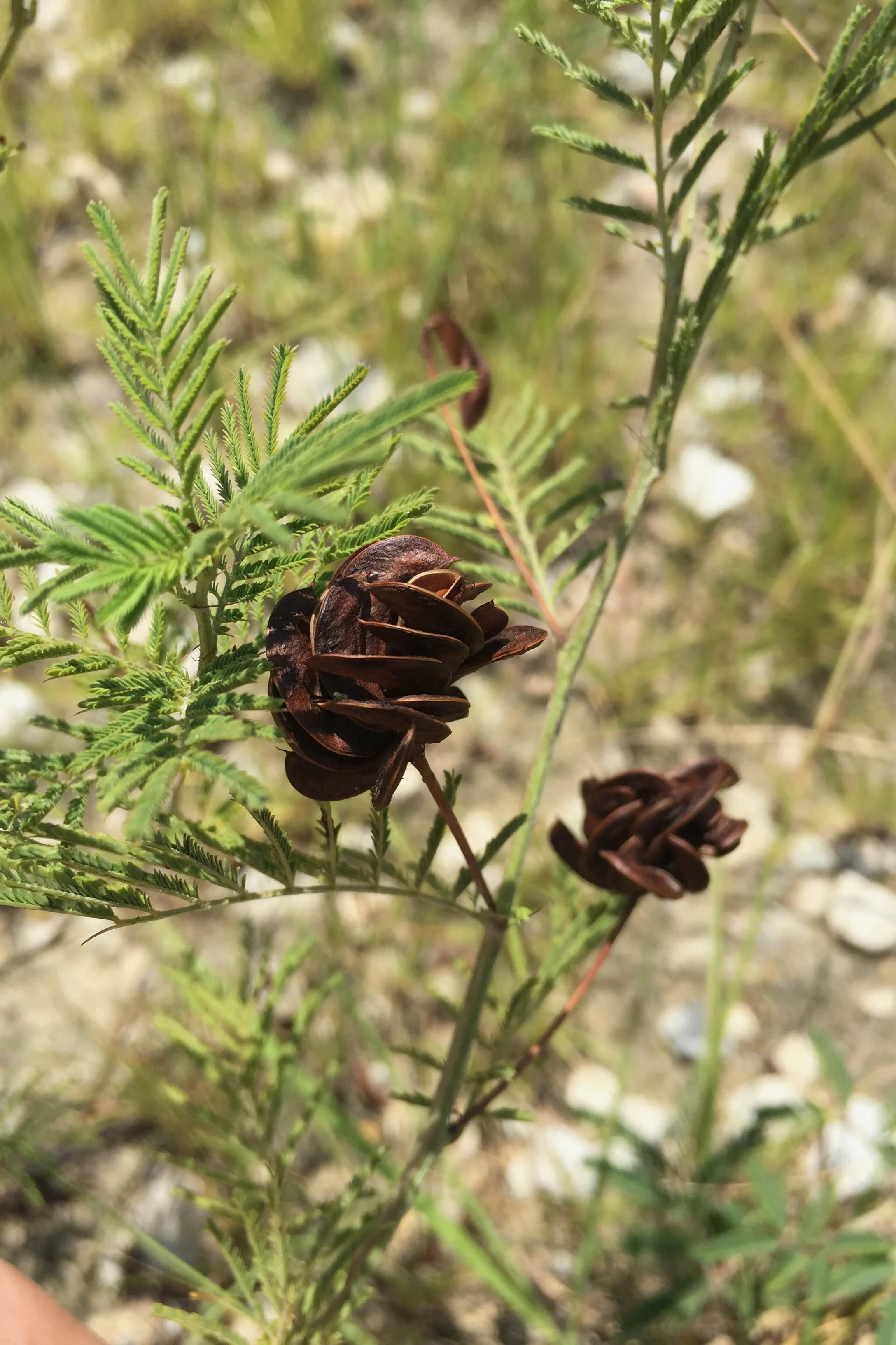 Before these brown seed pods, Bundleflower is covered in cream-colored, feathery blooms, much like an Acacia or Mimosa. Even the leaves resemble the previously mentioned genera. But don't worry, this plant is completely thorn-free and soft to the touch.
