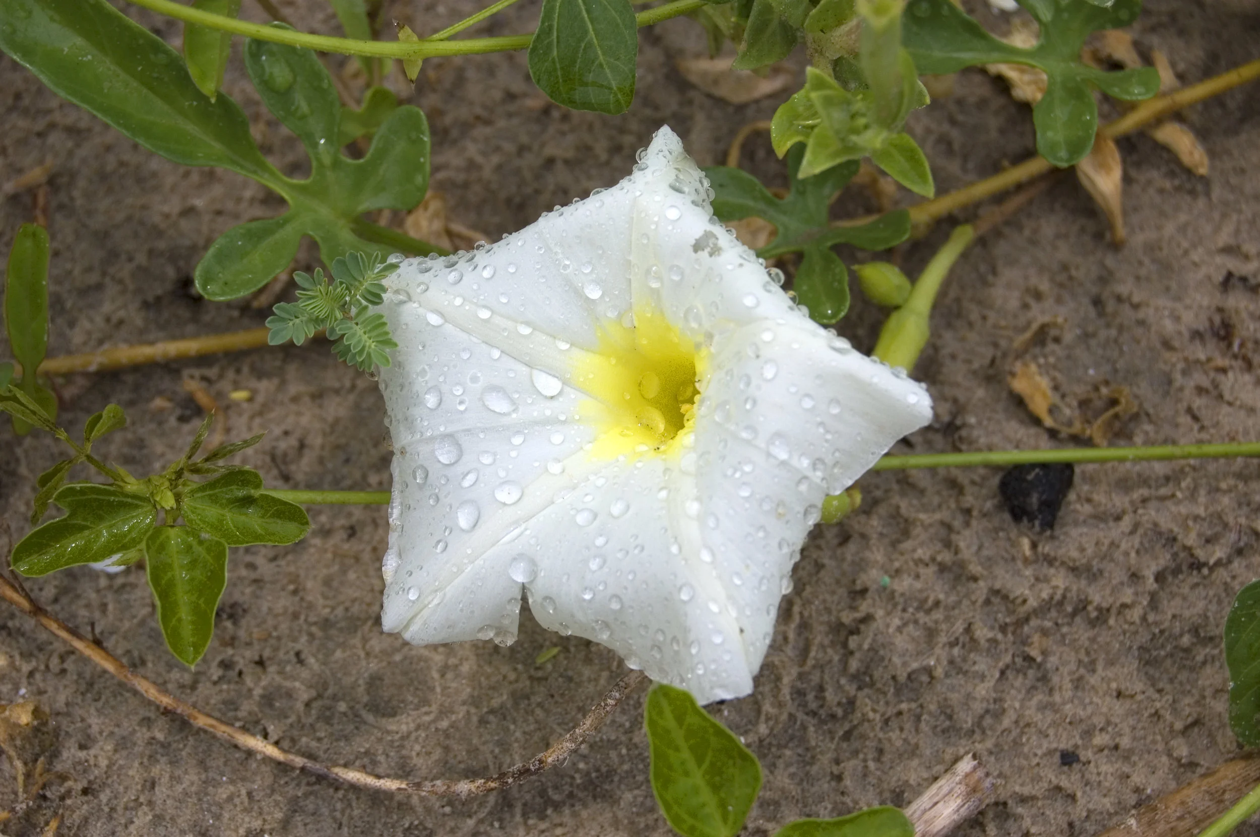 Morning Glories are well-known as a fast-growing vine that reseeds aggressively. I prefer this form of Ipomoea. The white flowers are stunning and are complimented by attractive foliage. The blooms were just smaller than a baseball. The Beach Morning Glory grows specifically in beach sand, and can be considered noxious.