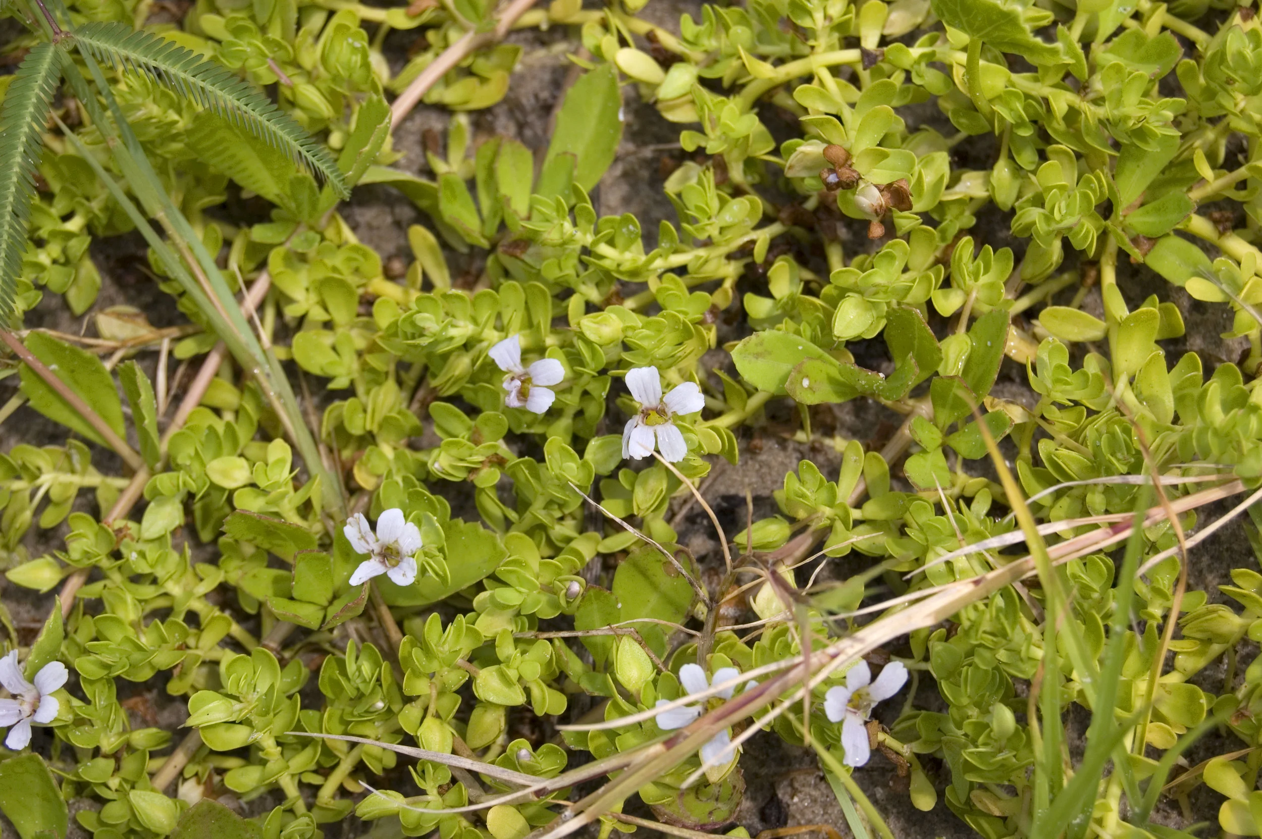 Bacopa has become a relatively-common spring and summer annual in the nursery industry. This native species grows all over the Gulf and southern Atlantic coastlines. It grows in mostly wet conditions and can be completely submerged, often found in estuaries.