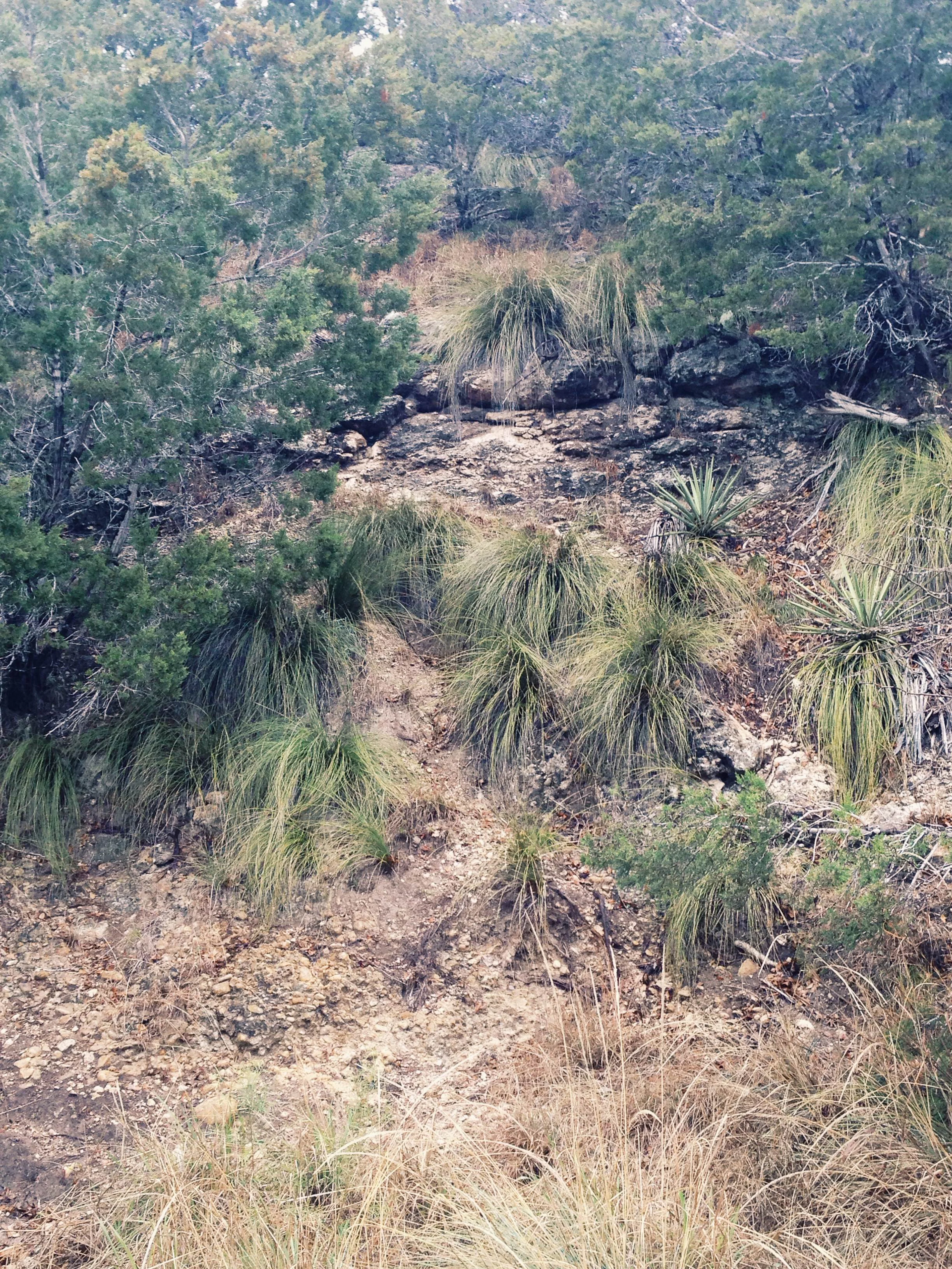 Similar to its N. texana cousin, N. lindheimeriana is a tough, evergreen, grass-like plant. With longer leaves, this species also has a taller bloom spike, reaching up 4 feet or higher. These were found on a northern limestone cliffside.