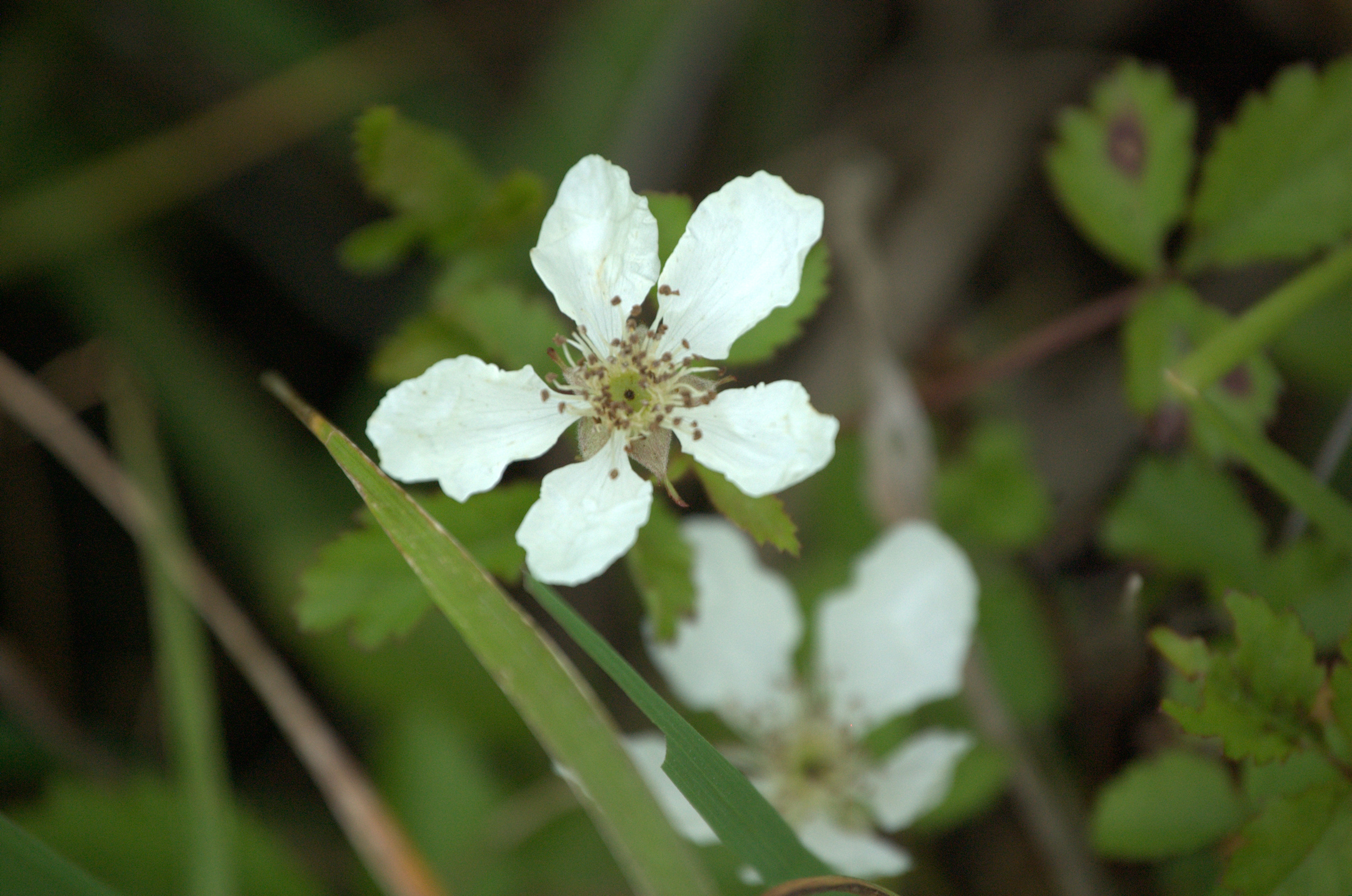 Dewberry puts on the simple, white flowers before giving way to tasty fruit resembling blackberries. They are usually found in the understory of shrubs or taller grasses. I have documented this species along Slaughter Creek.