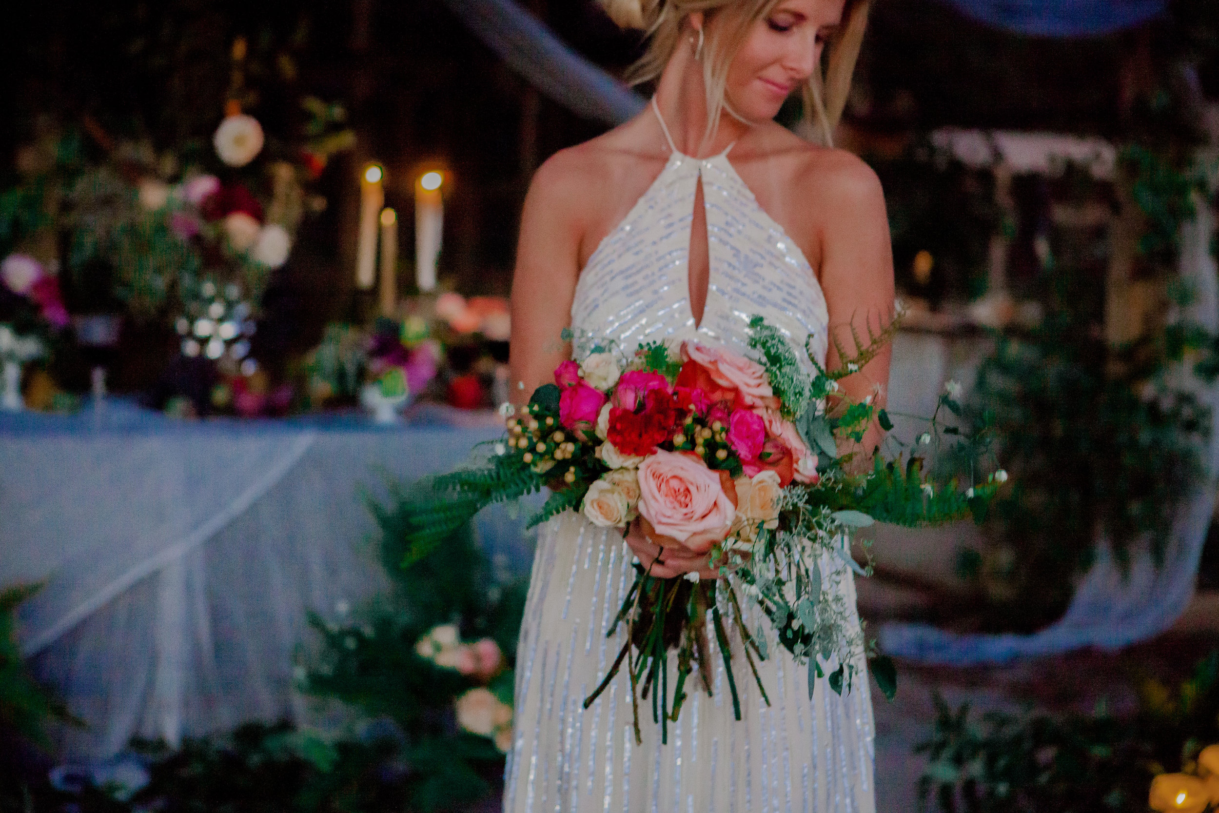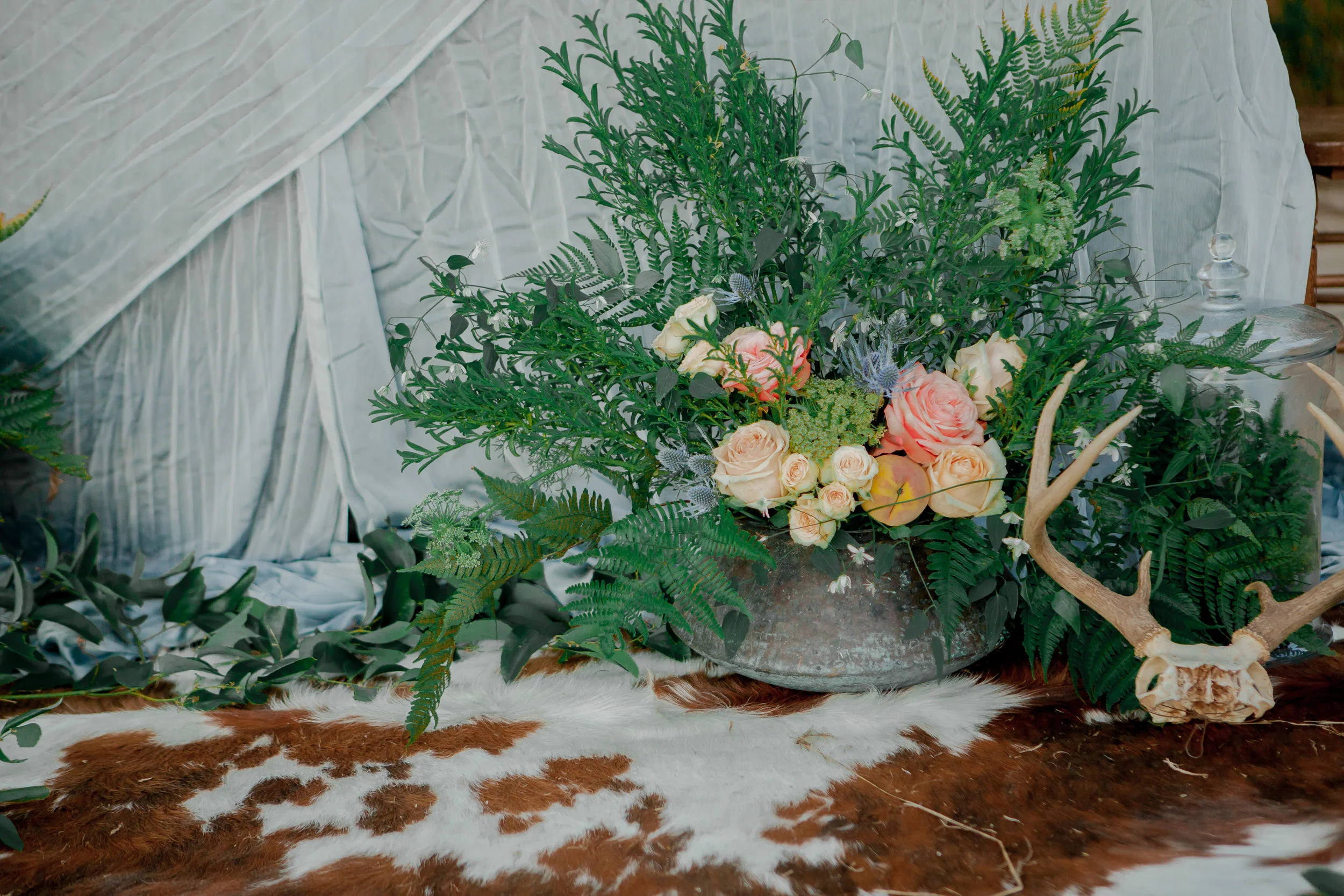 This past fall, I was lucky enough to collaborate with my talented friend, Elizabeth Thacker, an accomplished wedding photographer in East Texas, in creating a styled shoot featuring moody tones and lush looks. Under the beams of a new barn frame, Elizabeth draped the setting in shear fabric and smilax from the woods on the property.