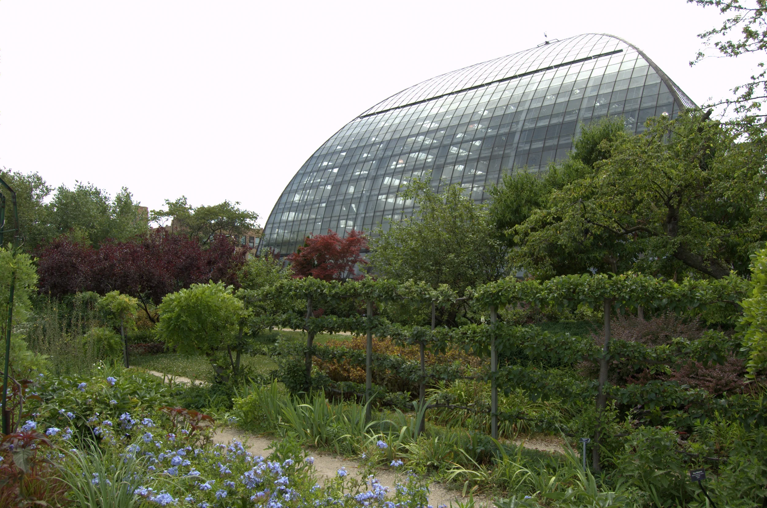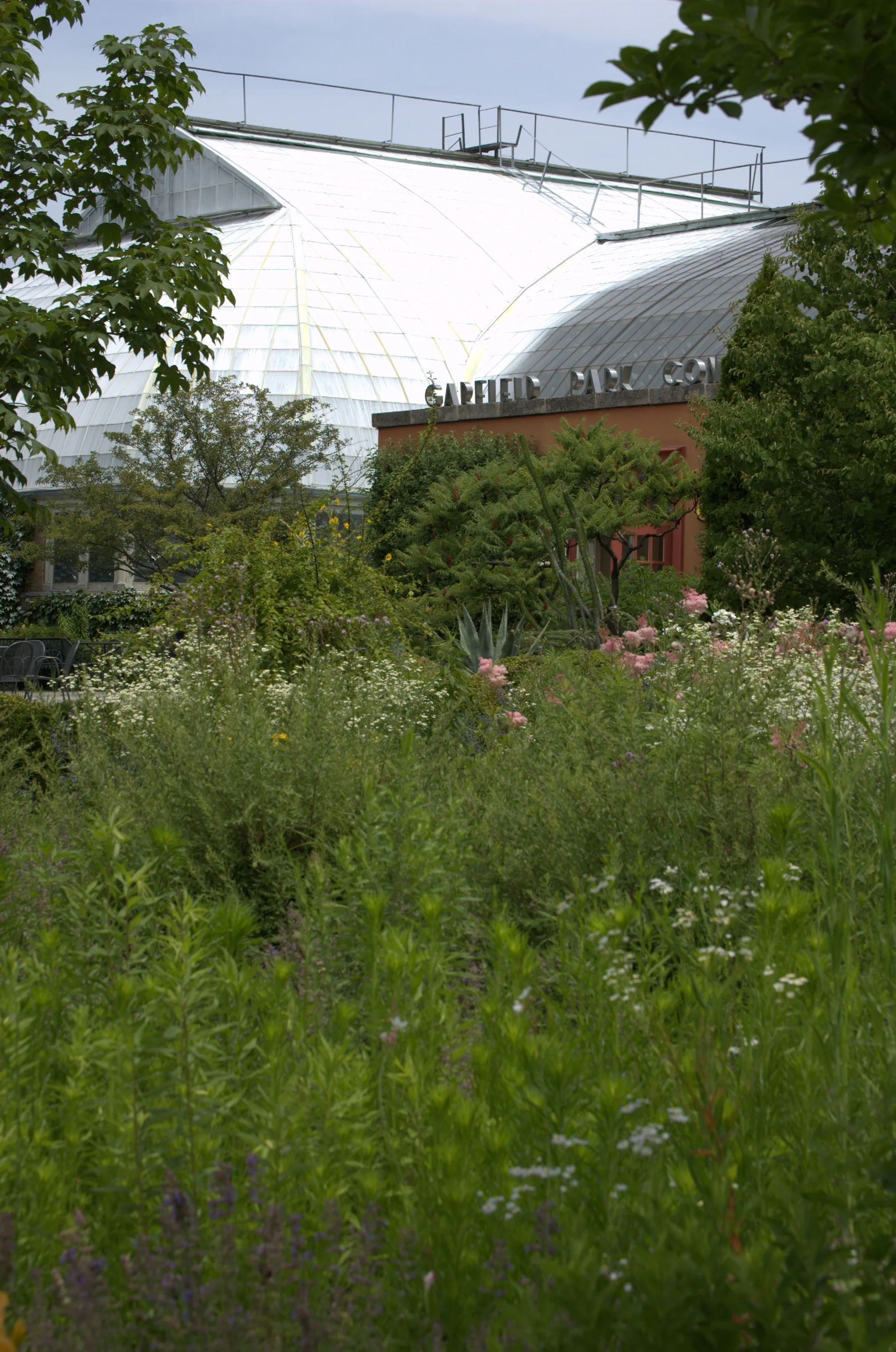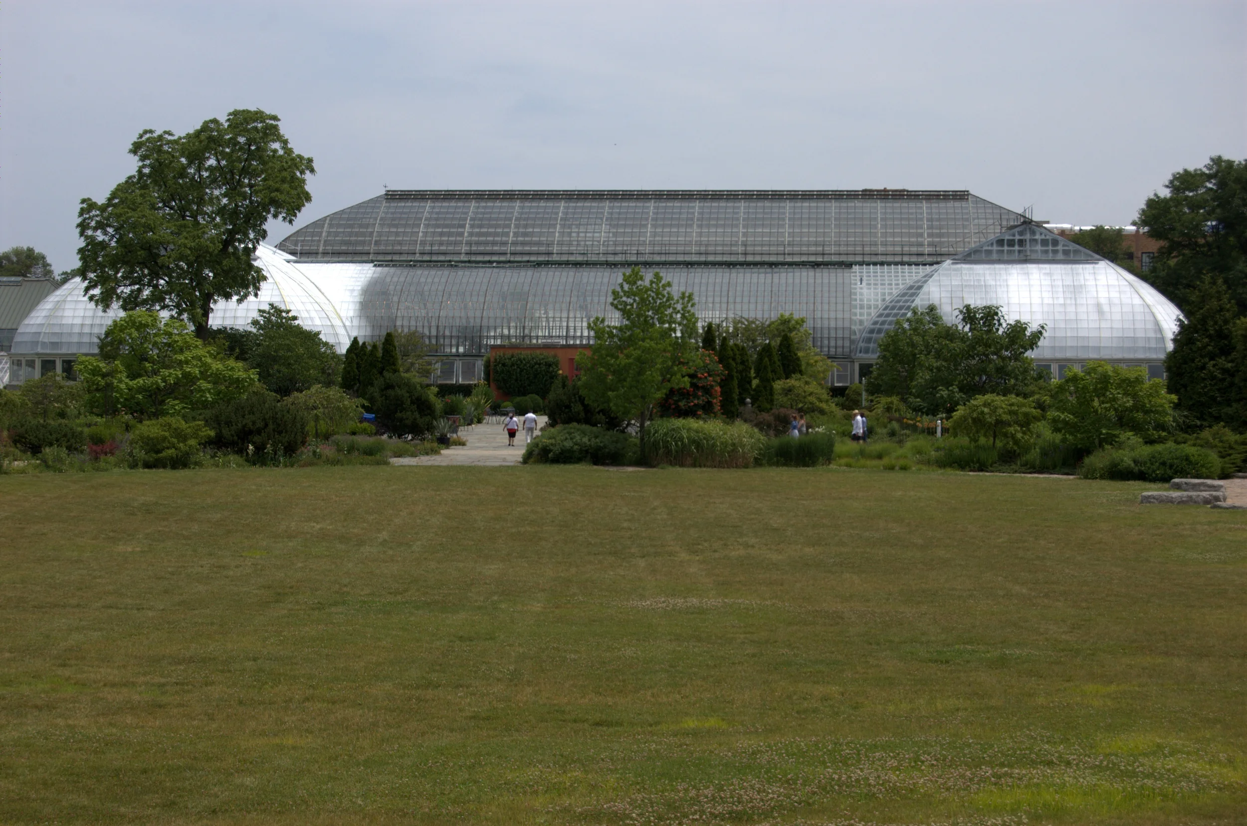 Over the July 4th holiday, I visited Chicago and its Garfield Park Conservatory. The conservatory was established in the 1880s with the structure pictured below constructed in 1907, and designed by famous Chicago landscape architect Jens Jensen. The shape of the greenhouses was meant to emulate the haystacks of the Midwest. The interior specimens were planted in forms that relate to each other naturally and create "landscapes under glass", a style that was revolutionary at the time of construction. The conservatory is one of the largest in the US at 4.5 acres, 2 of which is under glass. It is known for its extensive collection of rare palms and its popular Desert House.