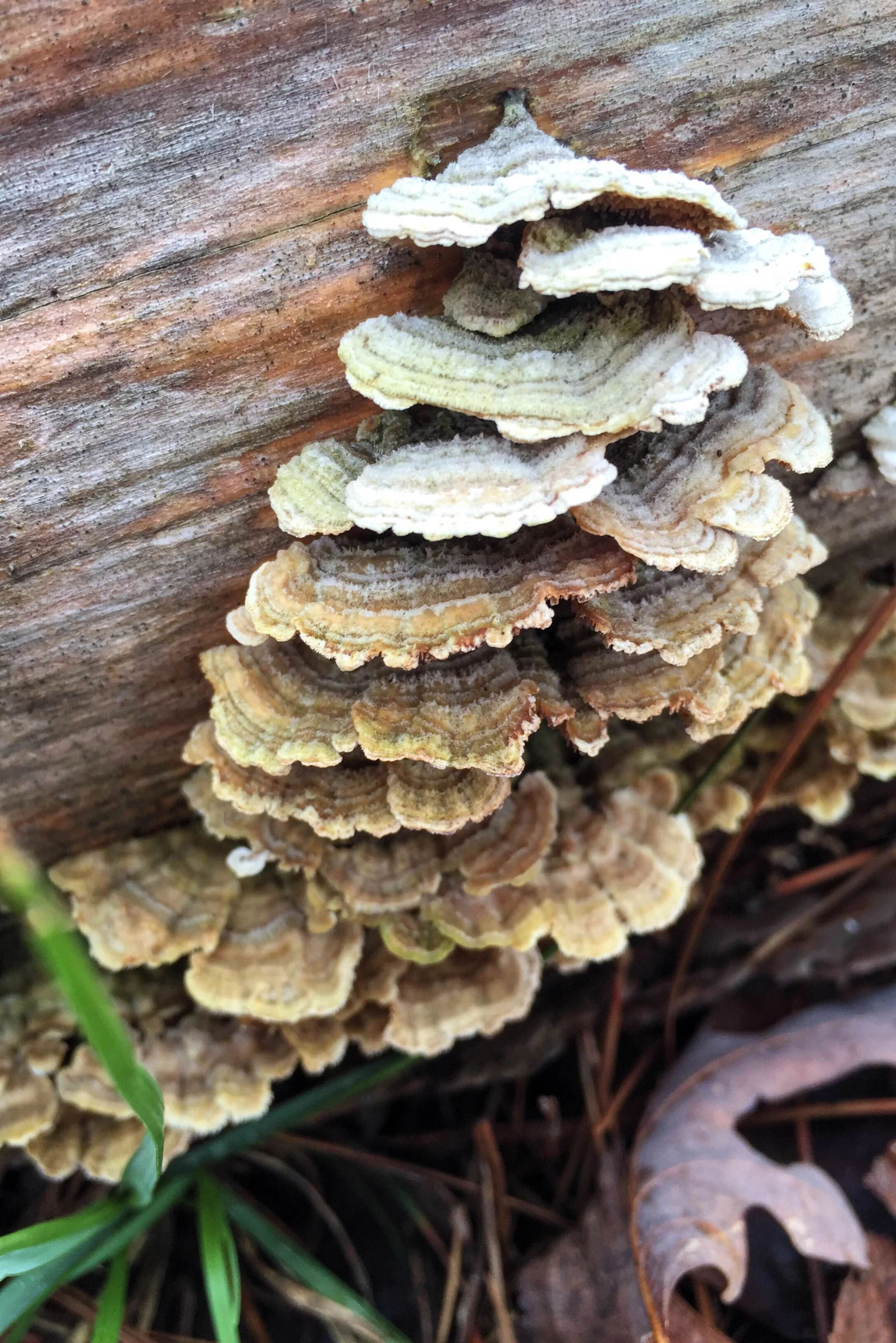 These shelf mushrooms are commonly referred to as Turkey Tails due to their similarity to the tail feathers of our Thanksgiving friend. This species serves as food for a variety of fungus moths and are found throughout North America. Despite their commonness, they are always stunning.