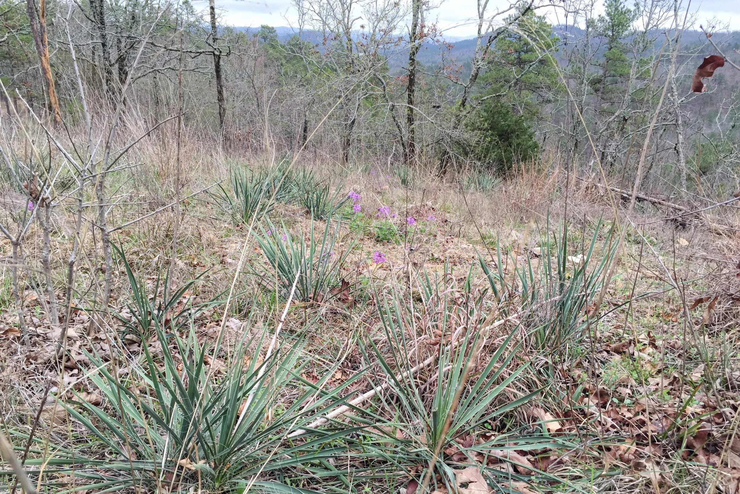 Arkansas Yucca is one of just a handful of Yucca species found in the state, and one of the most northern occurring species in America. This exposed hillside was dotted with the succulents, free of shade trees and accompanied by Verbena and short grasses.