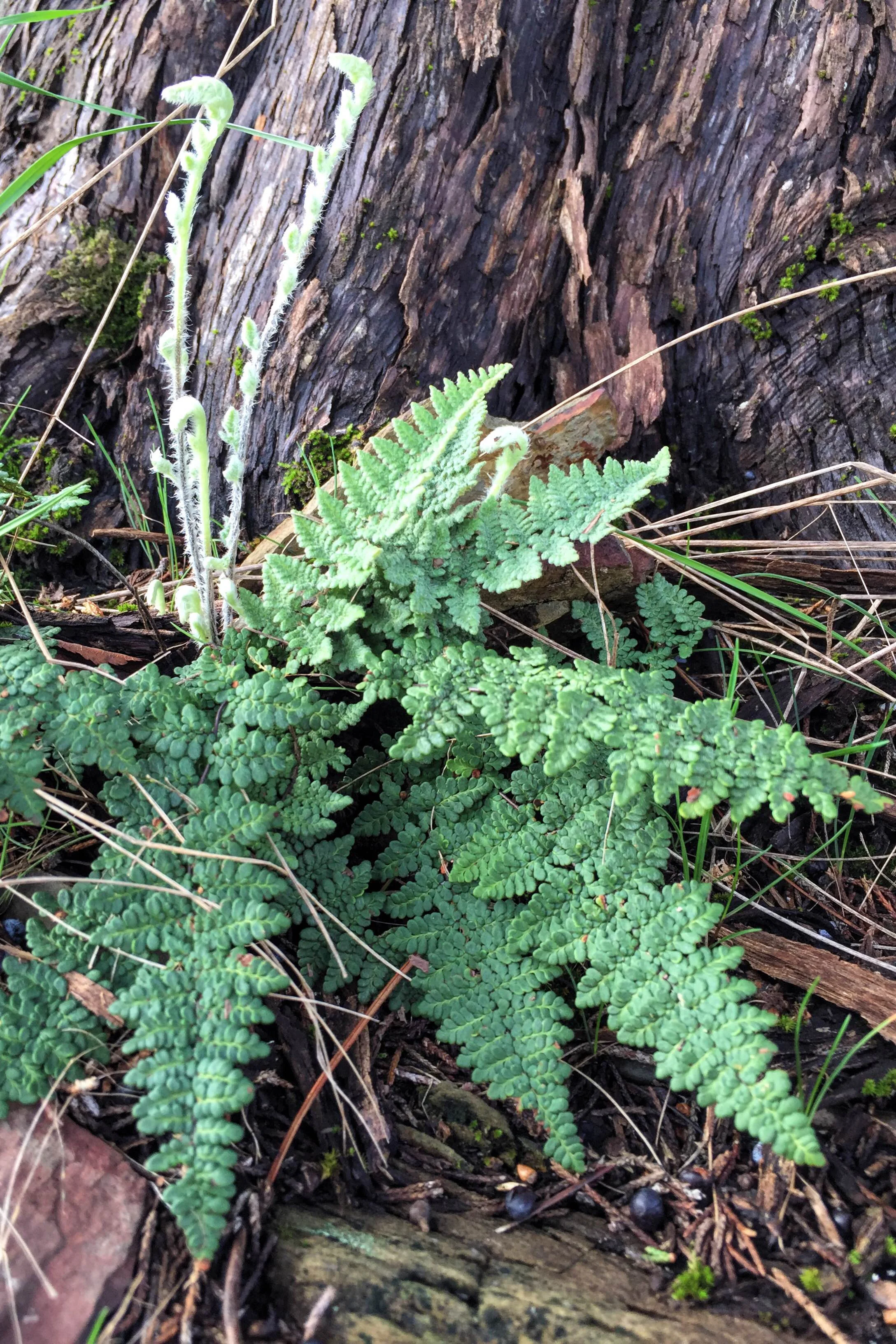 Species identification of all ferns in the genus Cheilanthes is especially difficult, and there are several species occurring in southeastern Oklahoma. This specimen was growing at the base of a Juniper, benefiting from the moisture that travels down the outside of the trunk when raining, and the shade the tree provides.