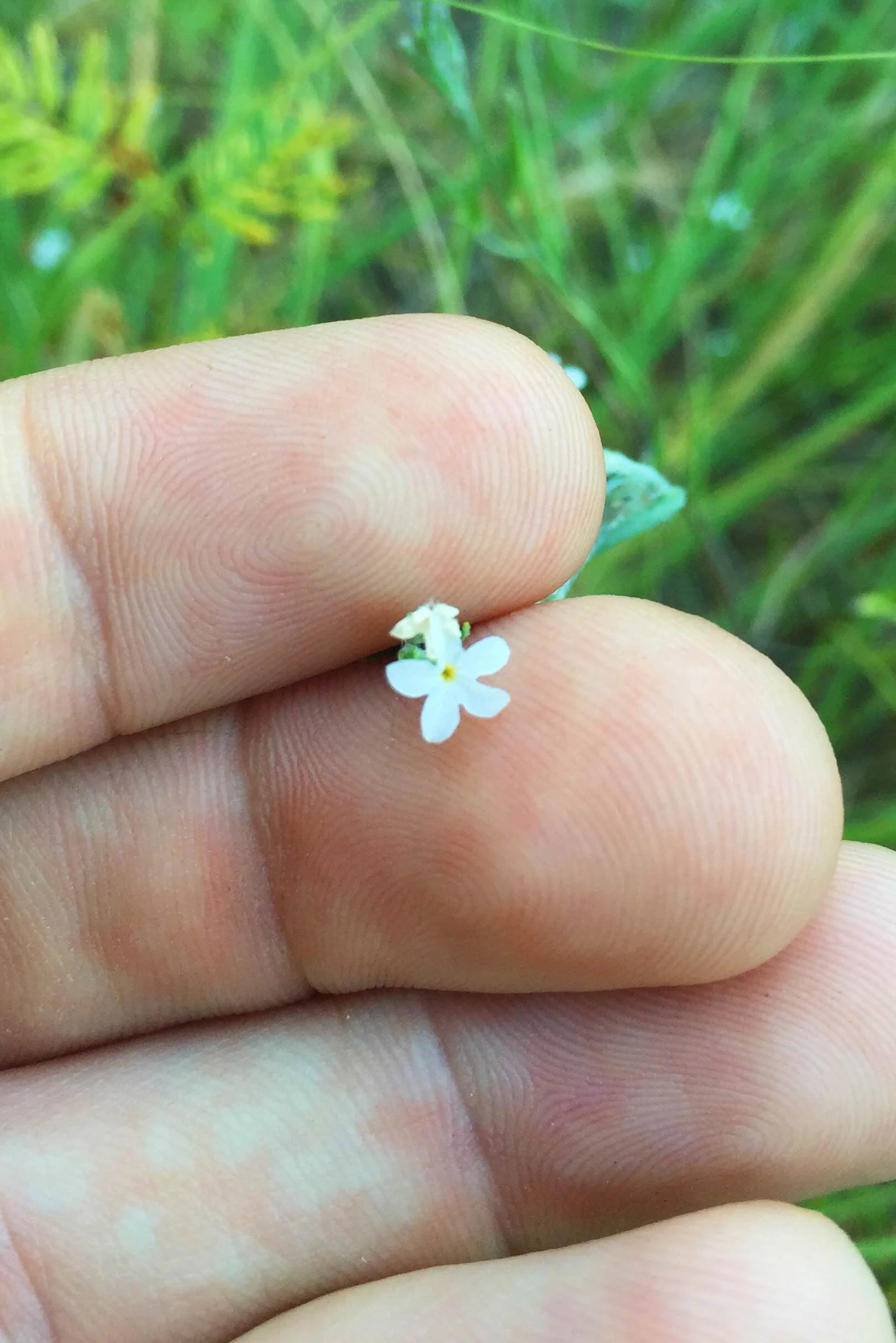 One of two tiny flowers to identify on this site, Heliotrope is found throughout the Midwest and Southeast. Withstanding drought, it typically grows to 2 feet and then tends to flop. It is a tough annual that grows best in limestone prairies.