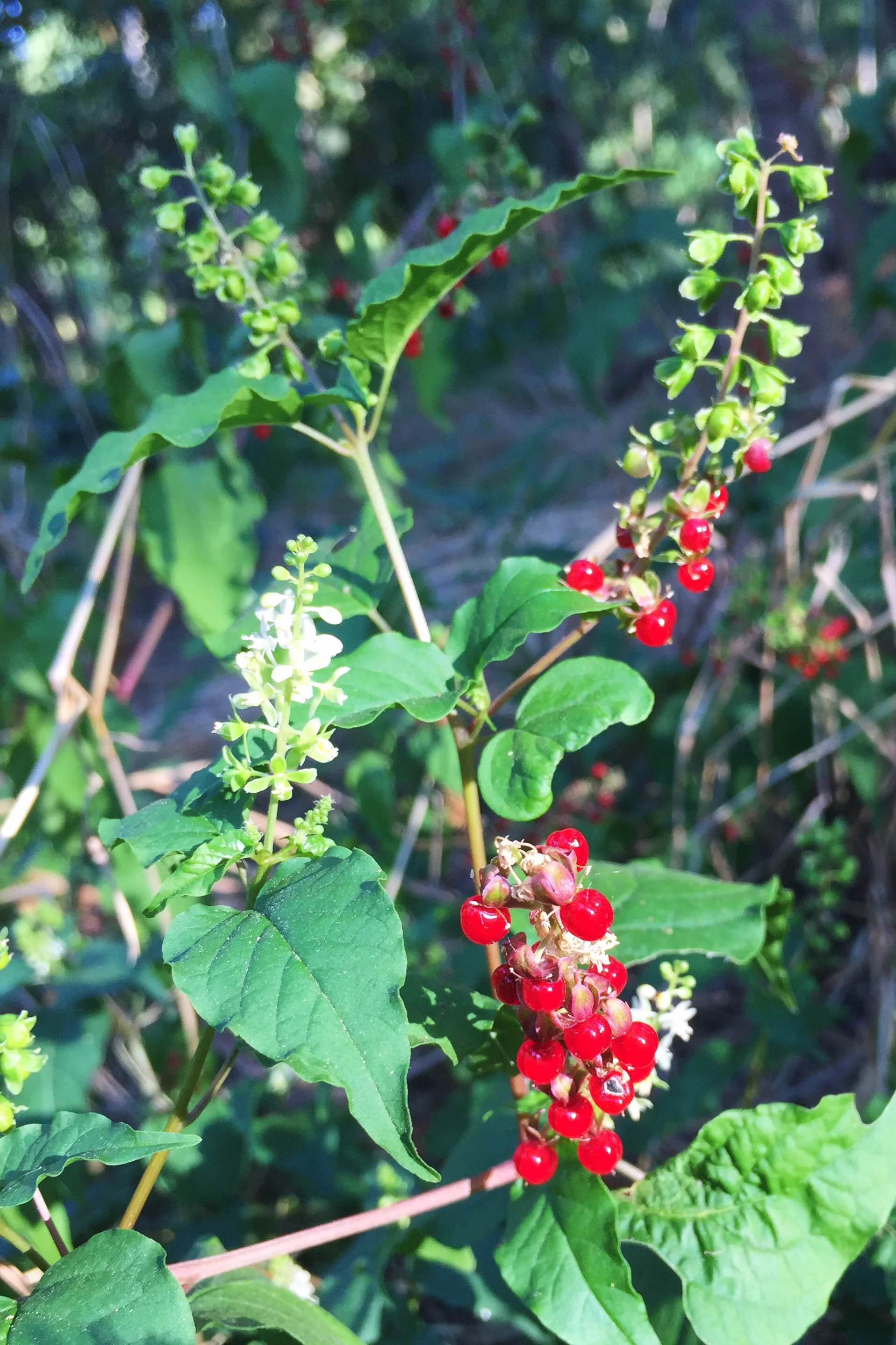 Pigeonberry is an attractive perennial that tolerates a good amount of shade and provides necessary food to many birds. Unlike most plants, R. humilis continually blooms throughout the warm season, often bearing fruit and blooming simultaneously.